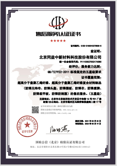 تلتزم الشركة بفكرة "طلب الحياة بواسطة الجودة" ، لذلك تحرص جداً على إدارة الجودة .لمتابعة الشركة في المقارنة بين جودتها والجودات داخل البلد والجودات العالمية ، أدت إلى تكوين نظام ضمان مثالي للجودة .حالياً ، قد إجتازت الشركة في نظام إدارة الجودة لمعدات الأسلحة ، نظام إدارة الجودة العالمي ISO 9001 ، و منسوجات الألياف العالمية OEKO-TEX Standard 100 . وتم عملية المتابعة والمراقبة بشك كامل في كلاً من التصميم ، التنمية ، التصنيع والإدارة في الترا عالية الوزن الجزيئي البولي ايثيلين الألياف و منتجات المواد المركبة .
